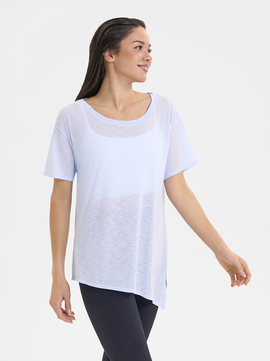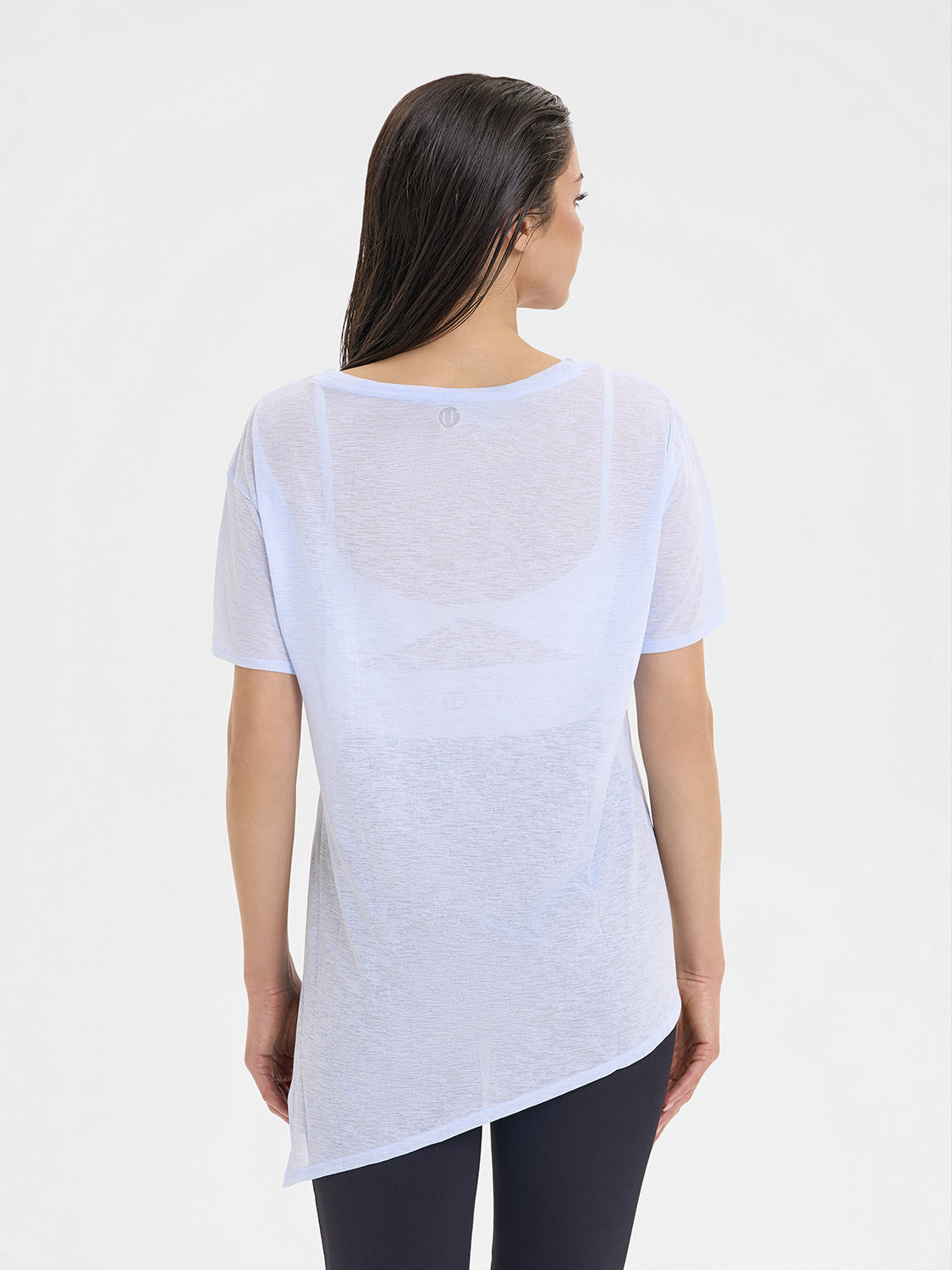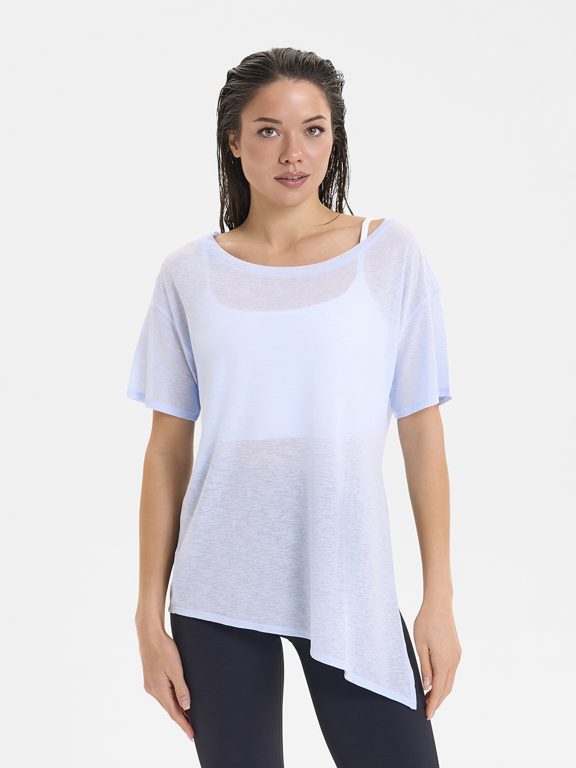 • Асимметричный крой низа футболки, разработанный стилистами бренда