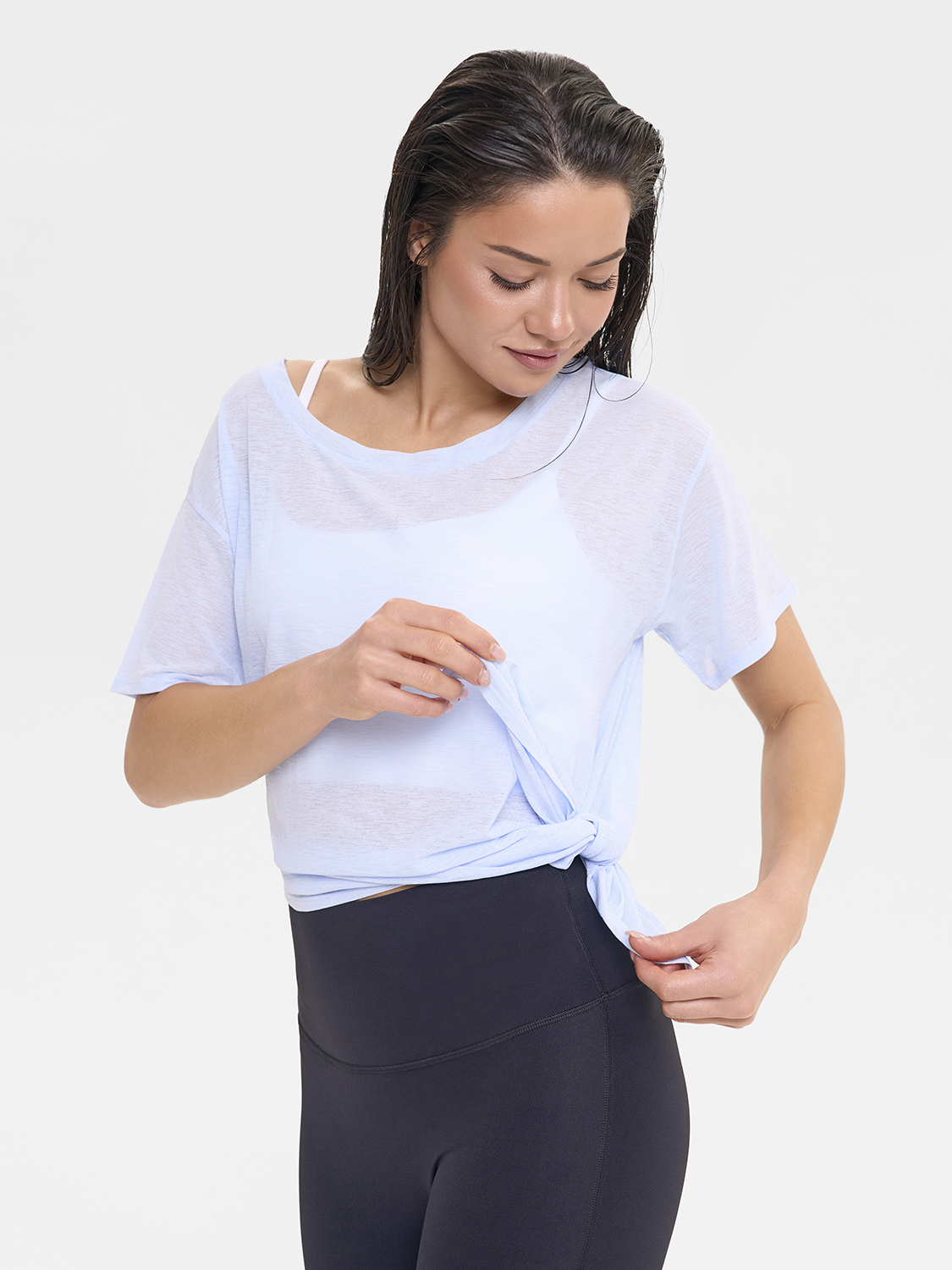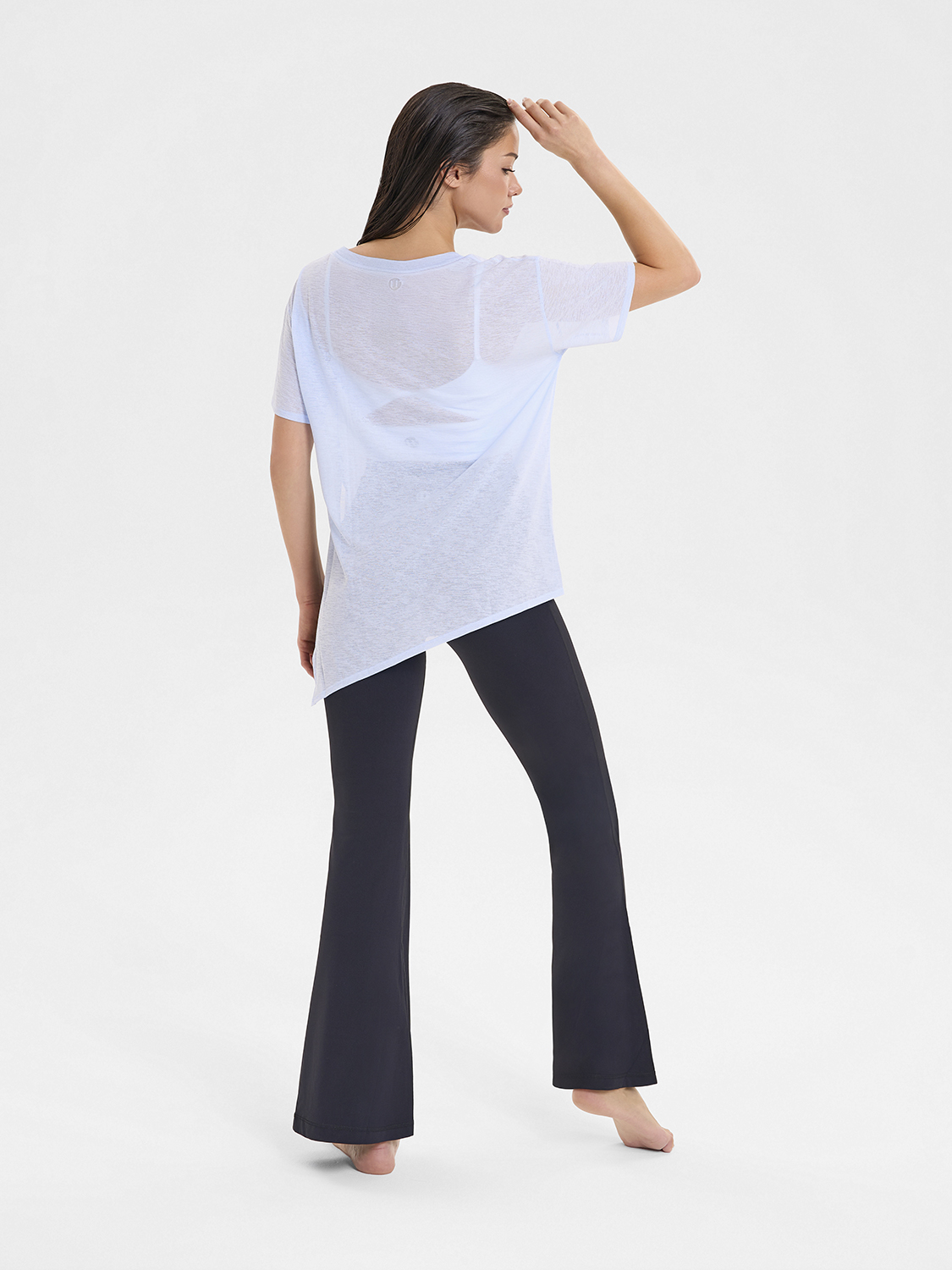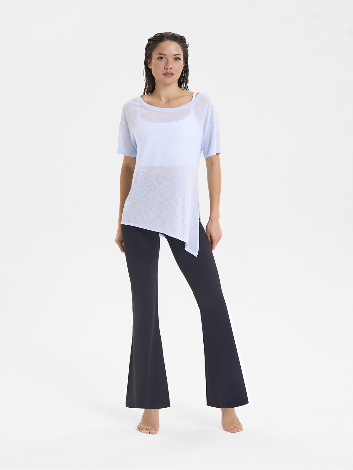 • Асимметричный крой низа футболки, разработанный стилистами бренда