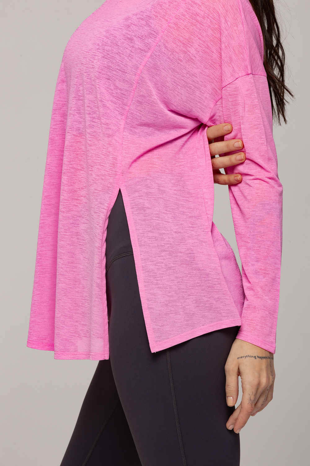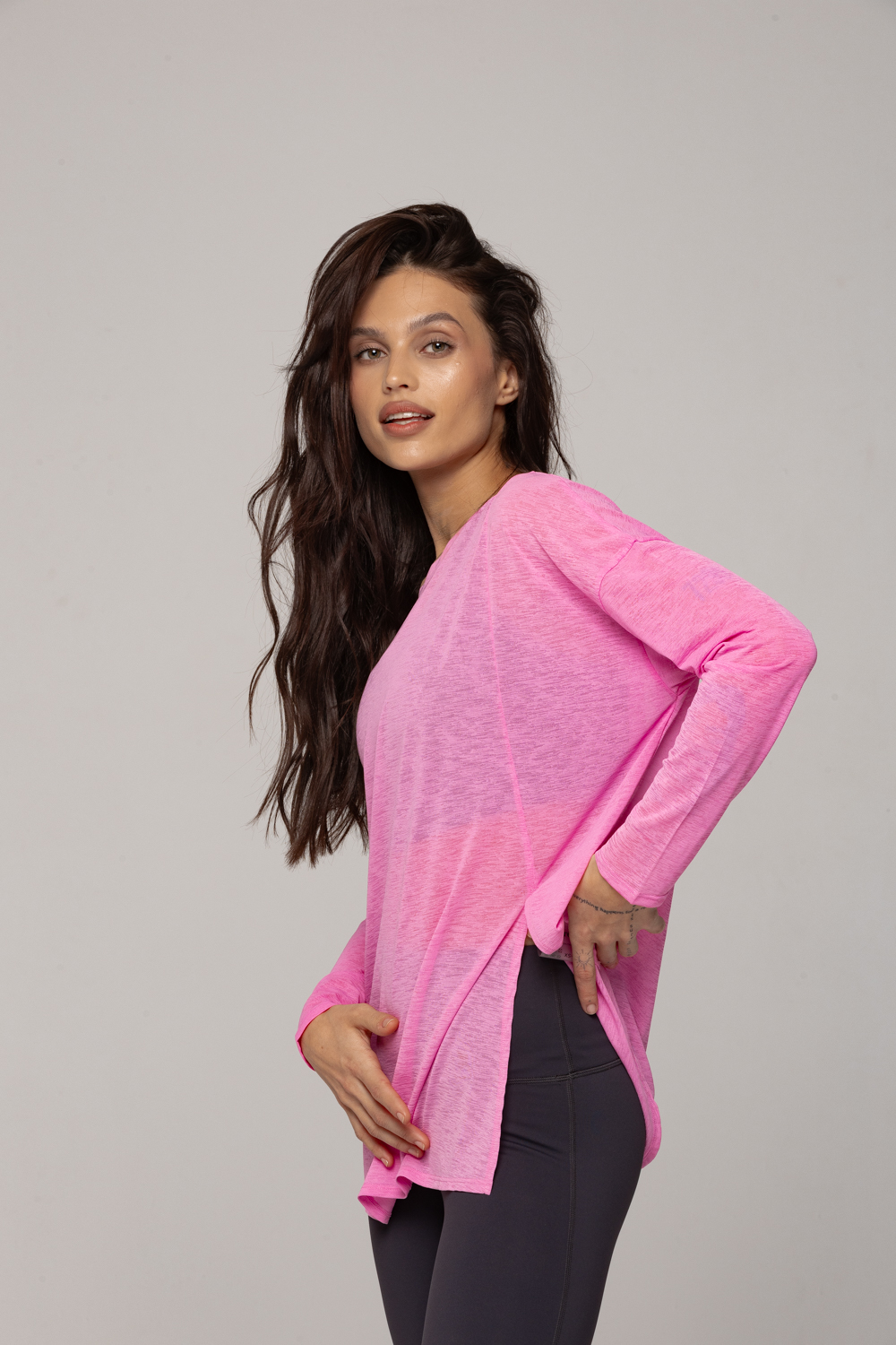 Лонгслив отлично подходит для занятий йогой, прогулок и повседневной носки. Его можно сочетать с джинсами, леггинсами или использовать как накидку на купальник.