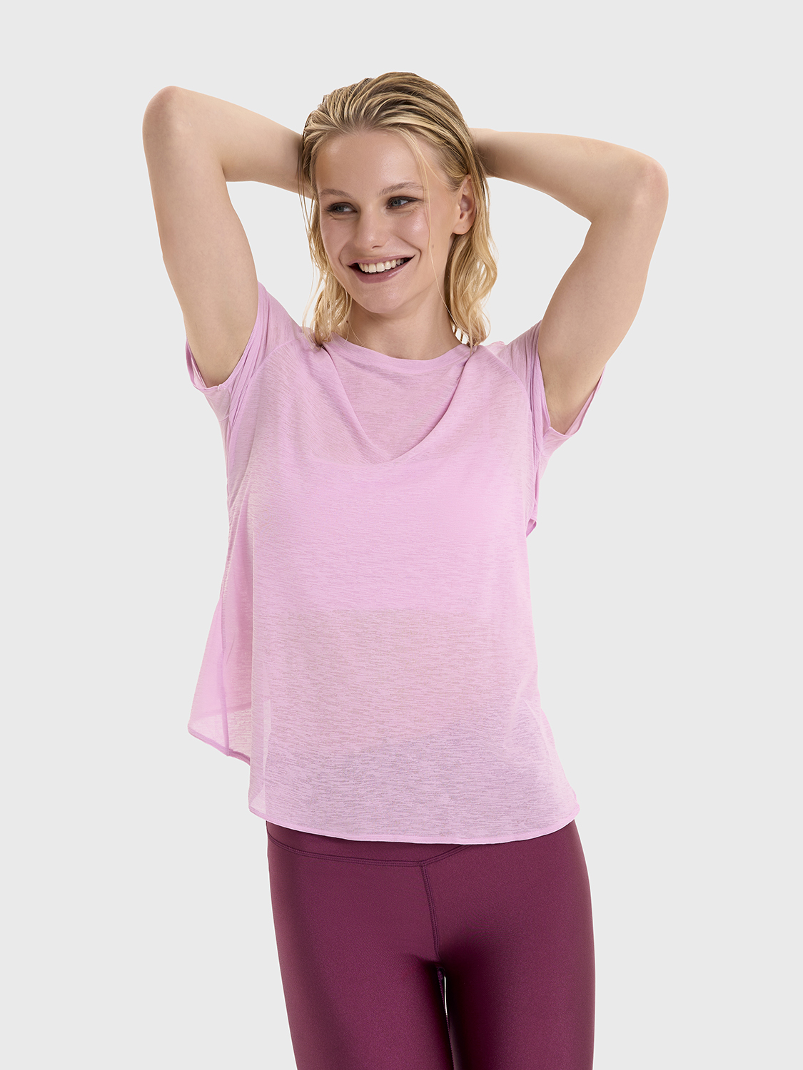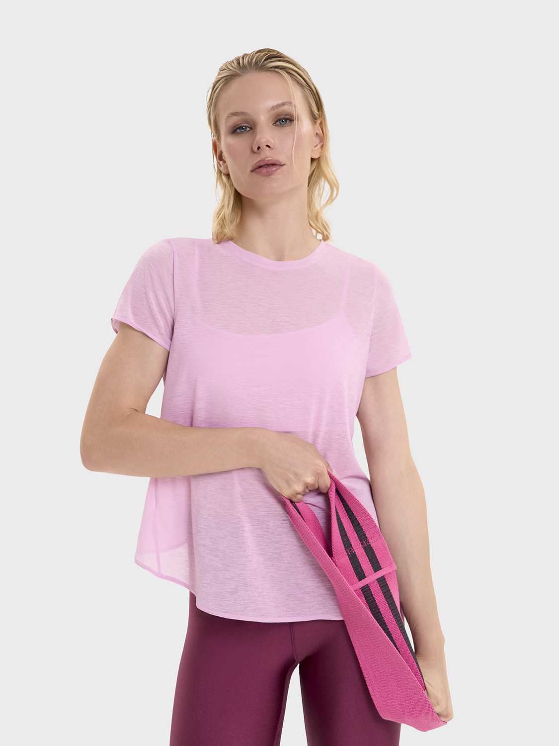 Футболка с коротким рукавом, перекрещивающаяся на спине по цене 2 490 ₽, цвет Розовый | SURE