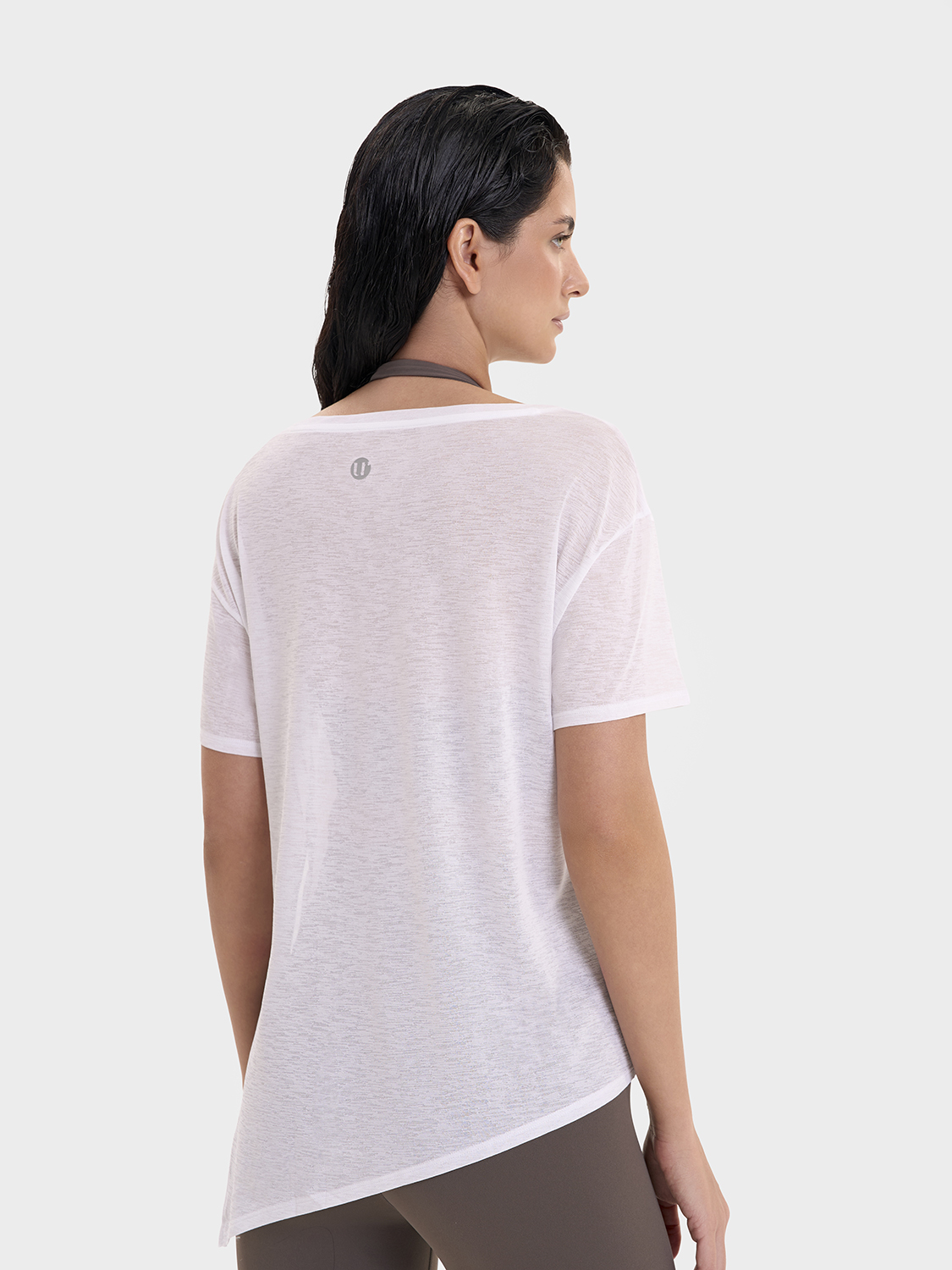 • Асимметричный крой низа футболки, разработанный стилистами бренда