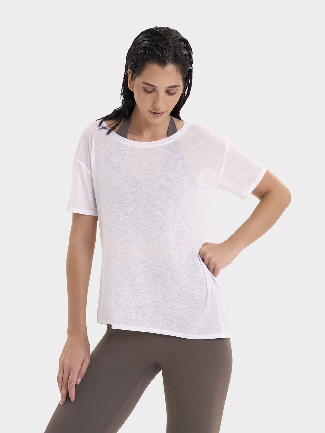 Эта футболка станет вашим любимым элементом гардероба, который можно комбинировать с любыми спортивными легинсами или носить как самостоятельный элемент в повседневной жизни.