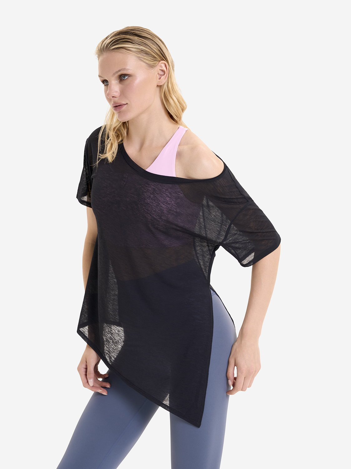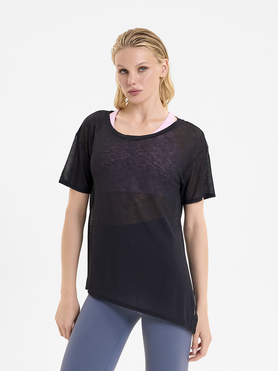 • Асимметричный крой низа футболки, разработанный стилистами бренда