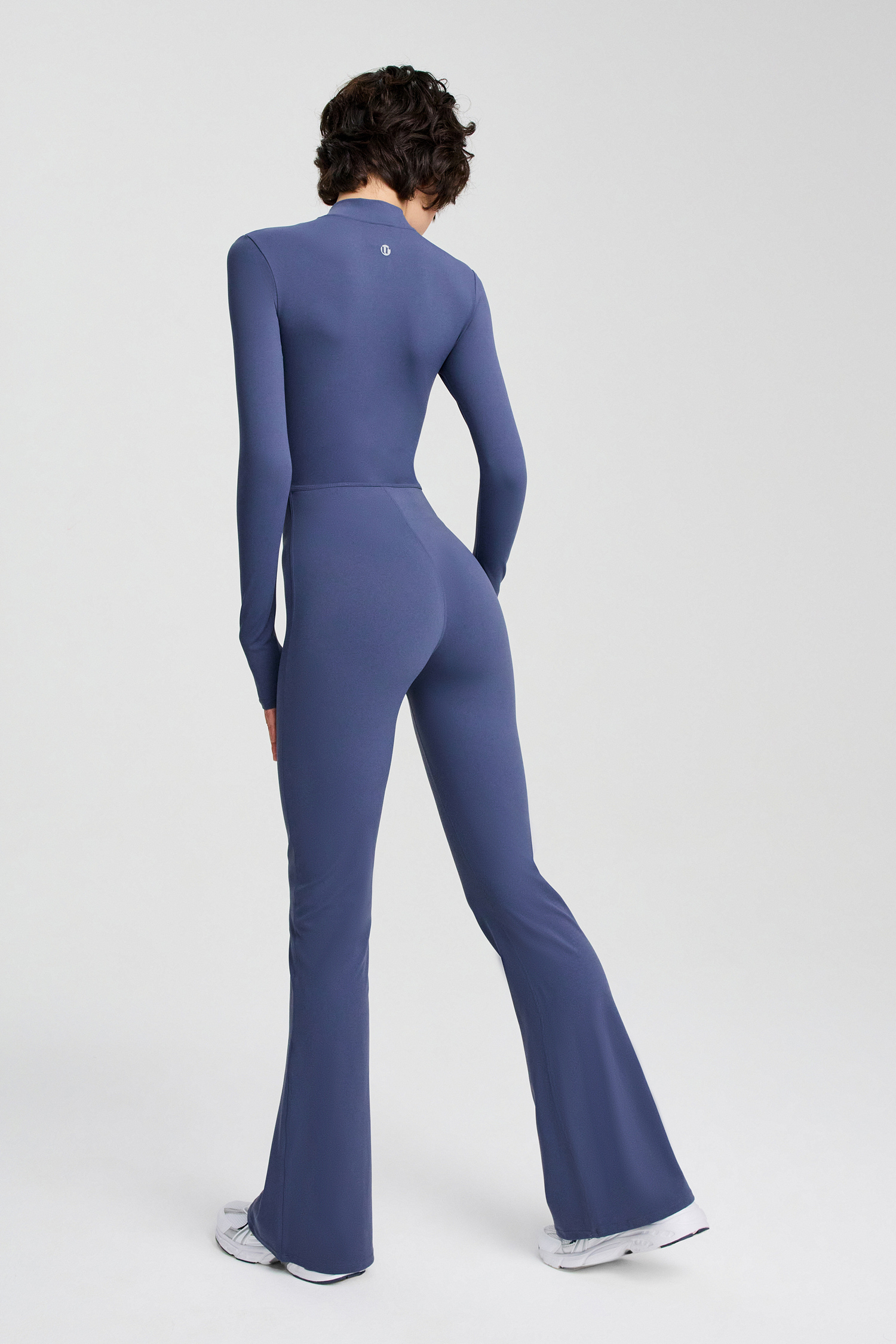Комбинезон с длинными рукавами и брюками-клеш, с молнией на груди