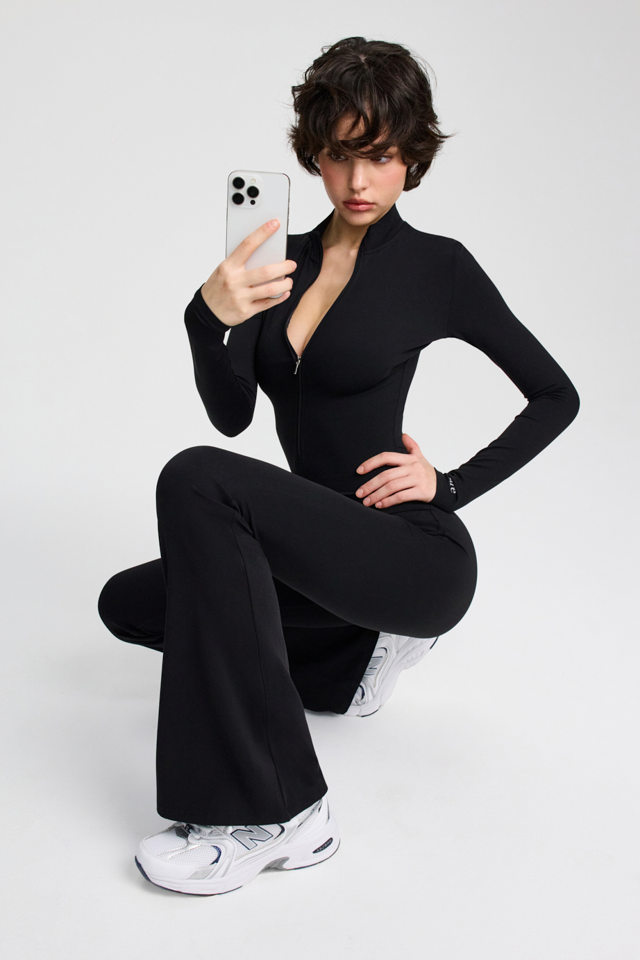 Комбинезон с длинными рукавами и брюками-клеш, с молнией на груди