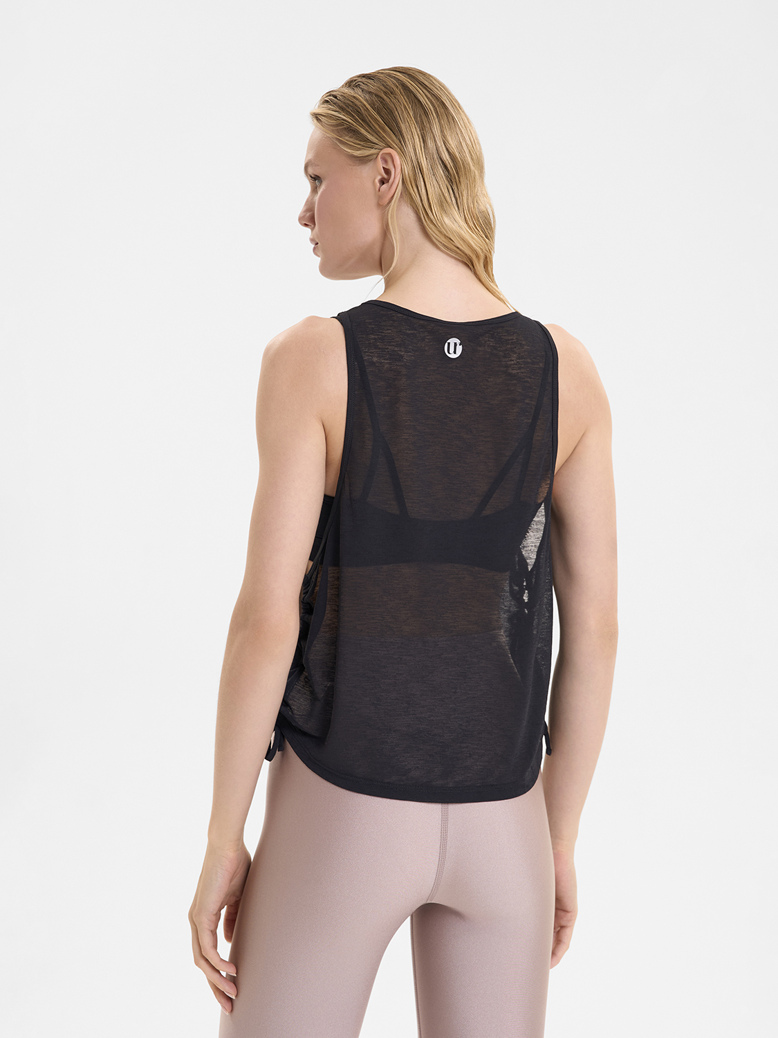 • Уникальный дизайн — фигурный вырез на спине и стильные завязки по бокам