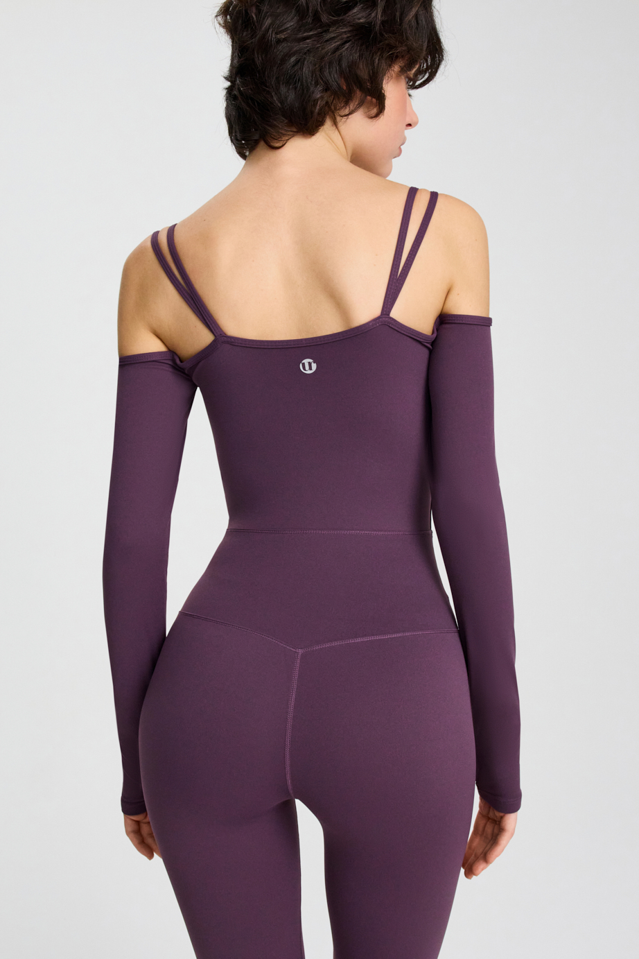 Французский шарм: Эффектный дизайн с открытыми плечами и двойными бретелями создает соблазнительный и в то же время изысканный образ. Эта модель станет ярким акцентом в вашем гардеробе, идеально подходя как для тренировок, так и для повседневных образов в стиле casual.