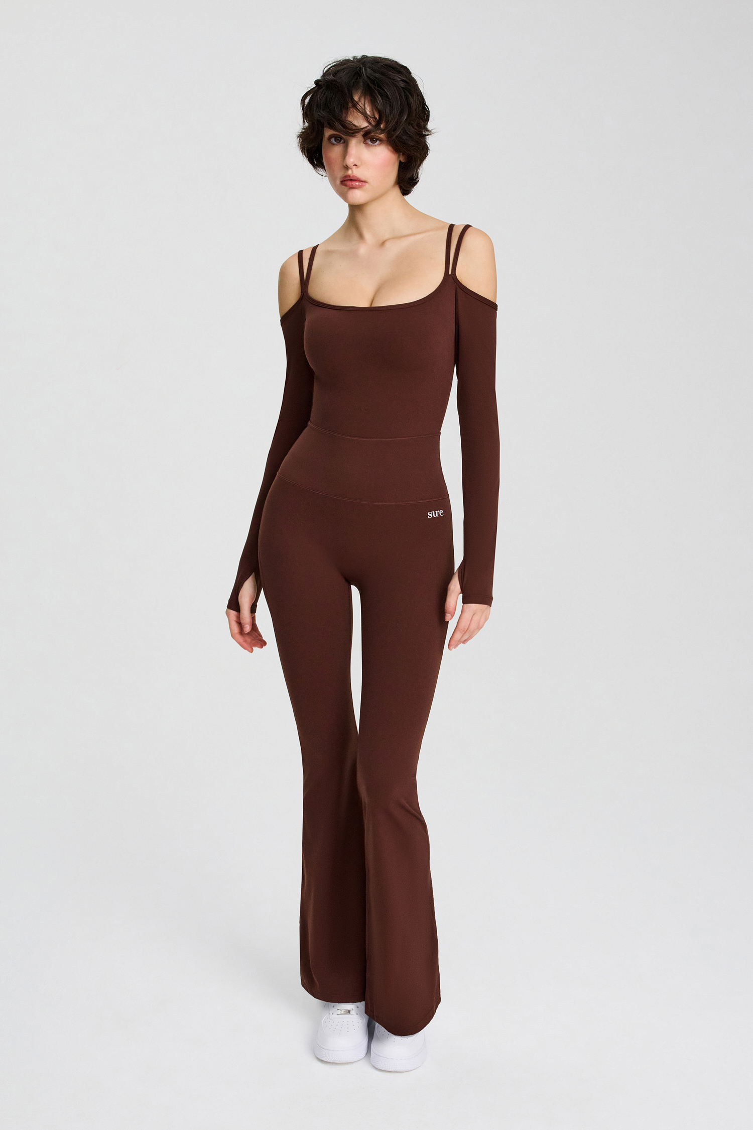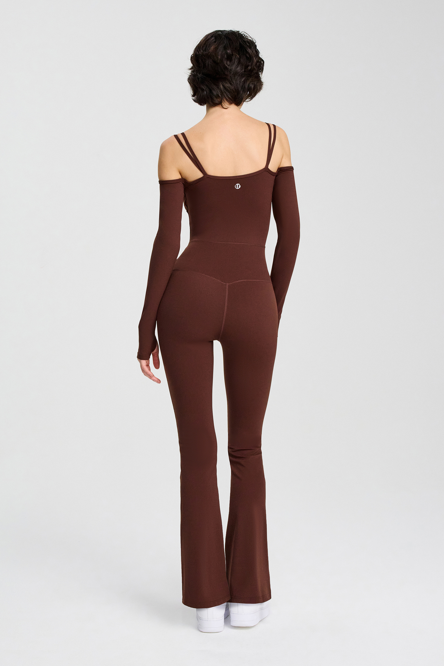 Идеальная форма: Цельнокроеный силуэт мягко облегает фигуру, подчеркивая все достоинства и создавая силуэт с длинными стройными ногами и тонкой талией. Штанины клеш визуально вытягивают линию ног.