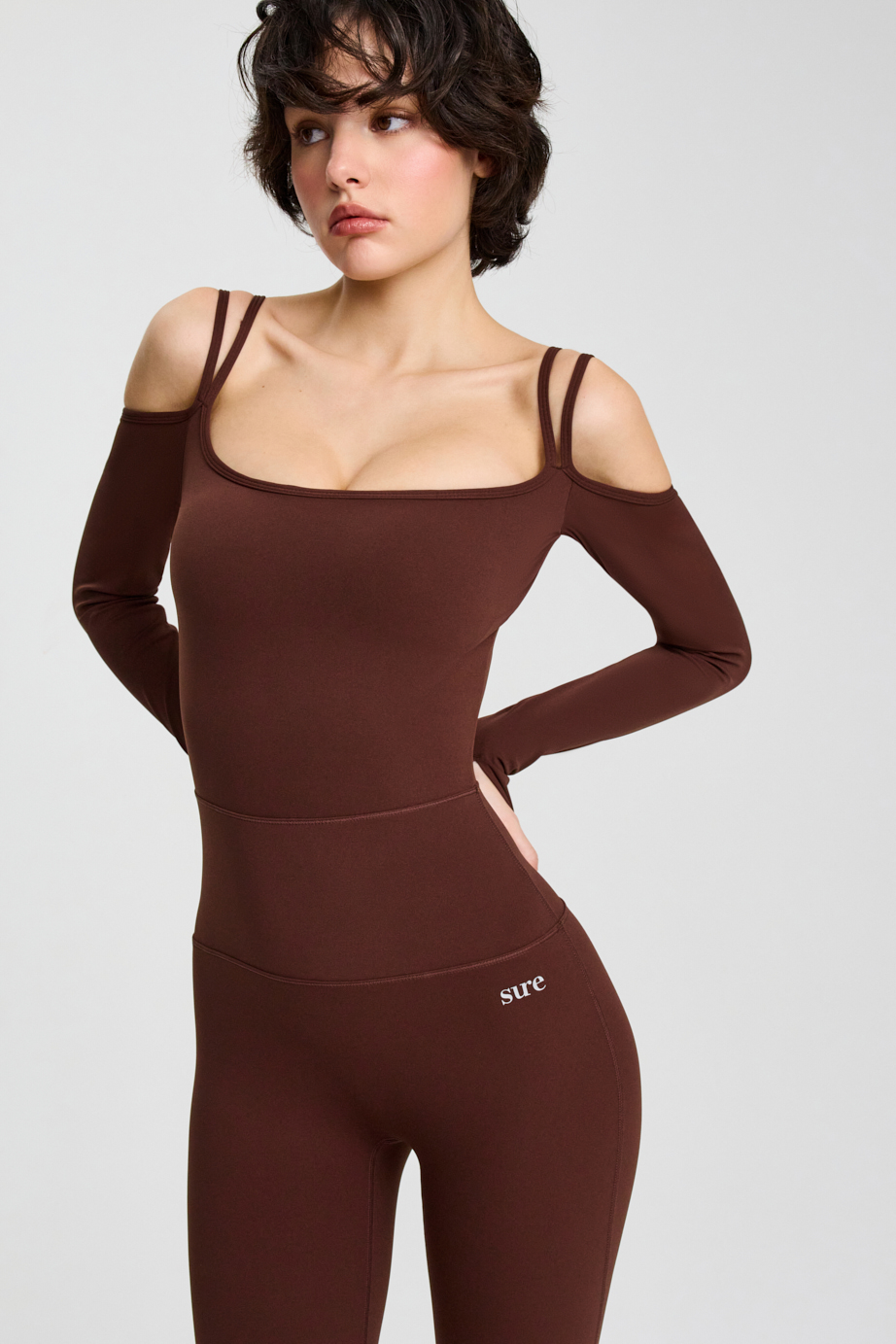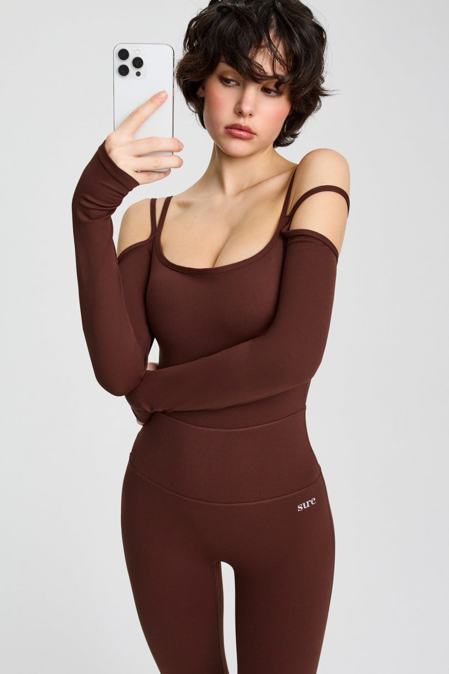 Французский шарм: Эффектный дизайн с открытыми плечами и двойными бретелями создает соблазнительный и в то же время изысканный образ. Эта модель станет ярким акцентом в вашем гардеробе, идеально подходя как для тренировок, так и для повседневных образов в стиле casual.