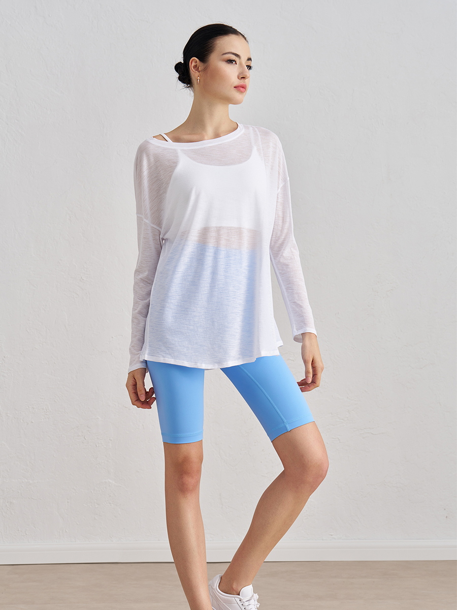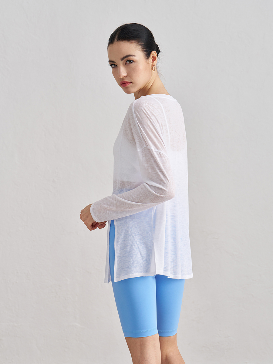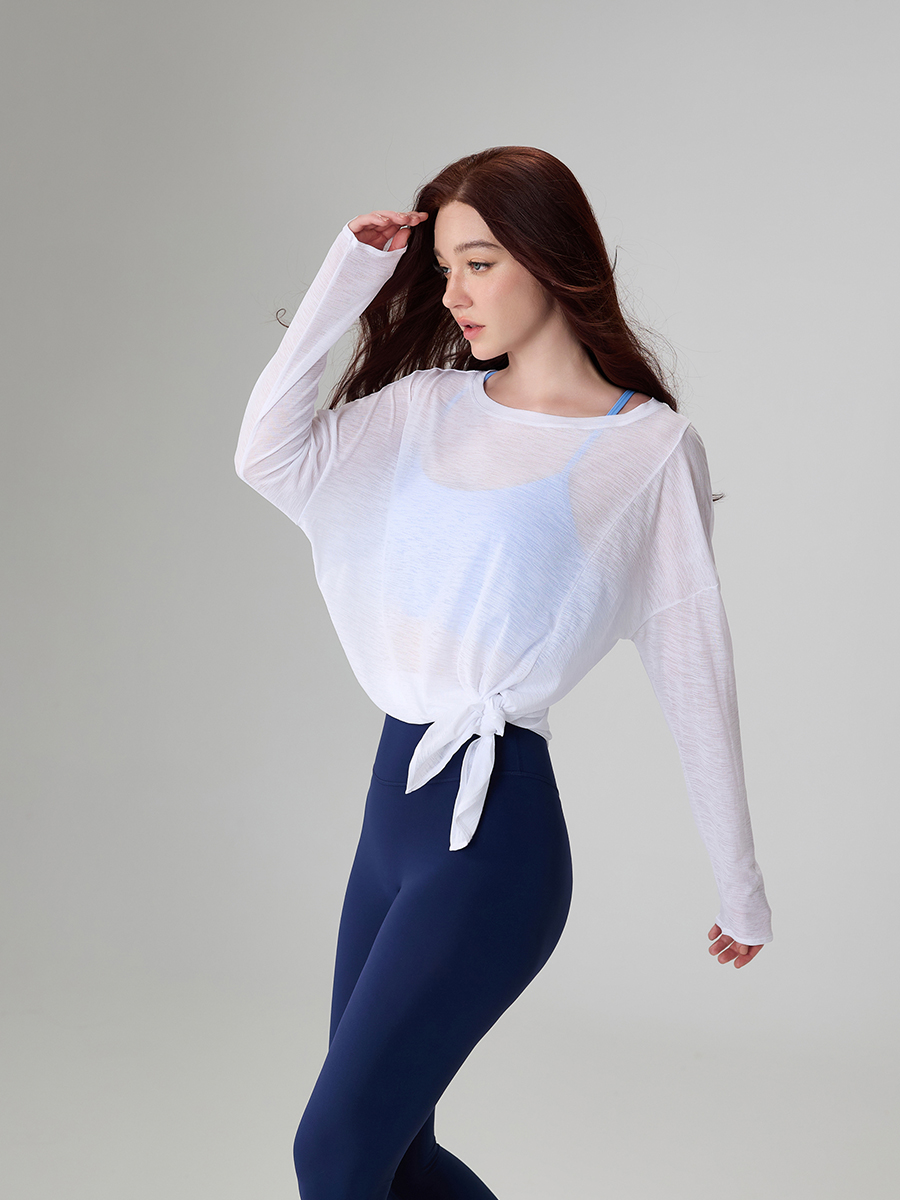 Лонгслив отлично подходит для занятий йогой, прогулок и повседневной носки. Его можно сочетать с джинсами, леггинсами или использовать как накидку на купальник.