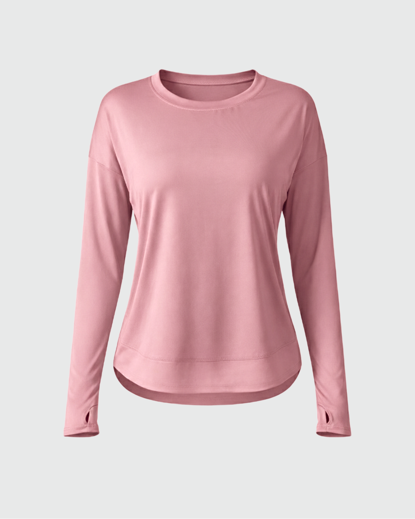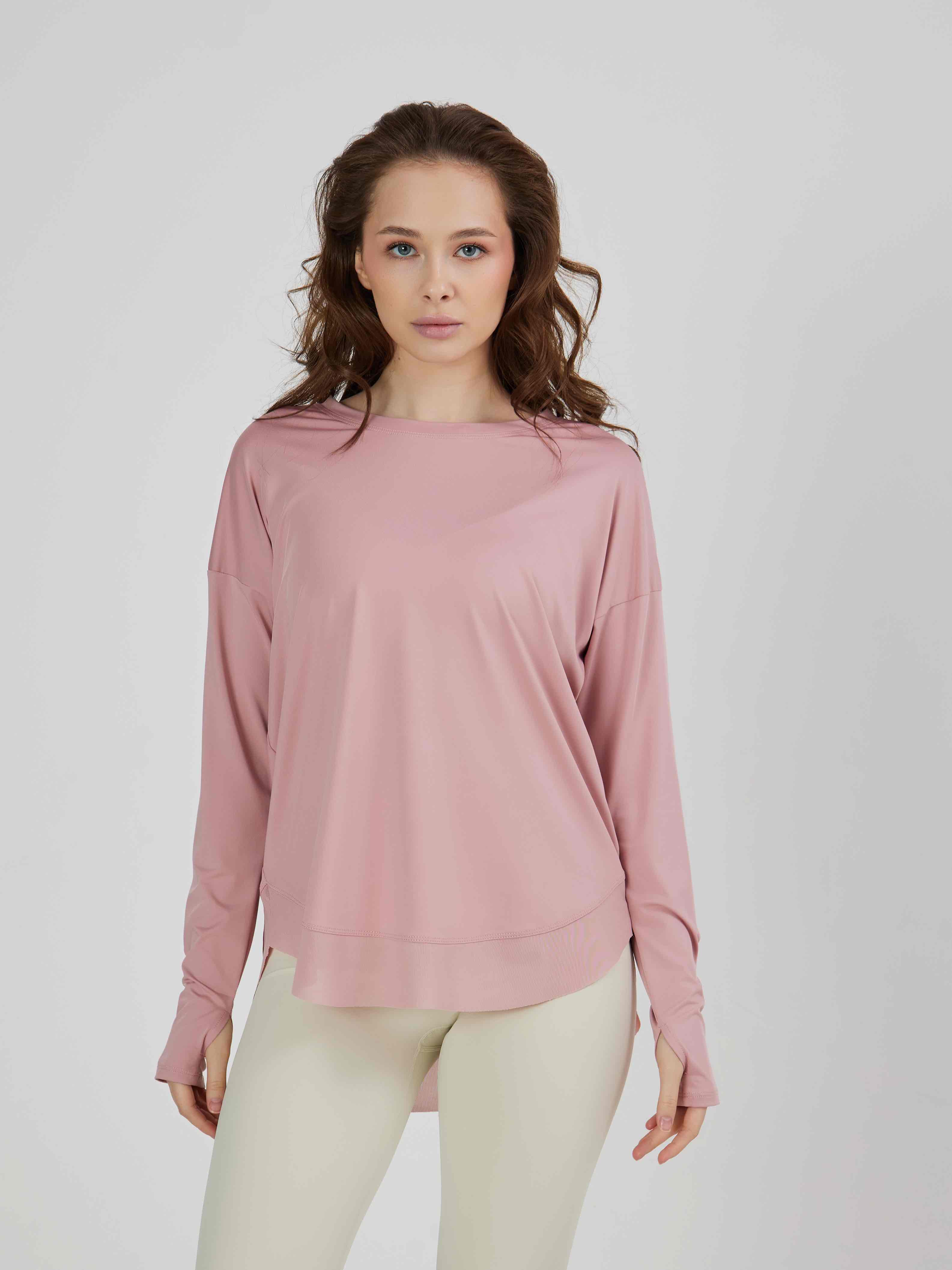 Лонгслив длинный свободный с полукруглым низом  - это идеальный выбор для активных женщин, ценящих комфорт и стиль. Изготовленный из дышащего, немнущегося и быстросохнущего материала с добавлением спандекса, он обеспечит свободу движений во время тренировок по фитнесу, танцам или йоге. Свободный покрой и полукруглый низ с сеточкой создают комфортный и стильный силуэт, а гладкая фактура материала приятна к телу. Лонгслив доступен в классических цветах, что позволяет легко сочетать его с другими элементами спортивного гардероба.