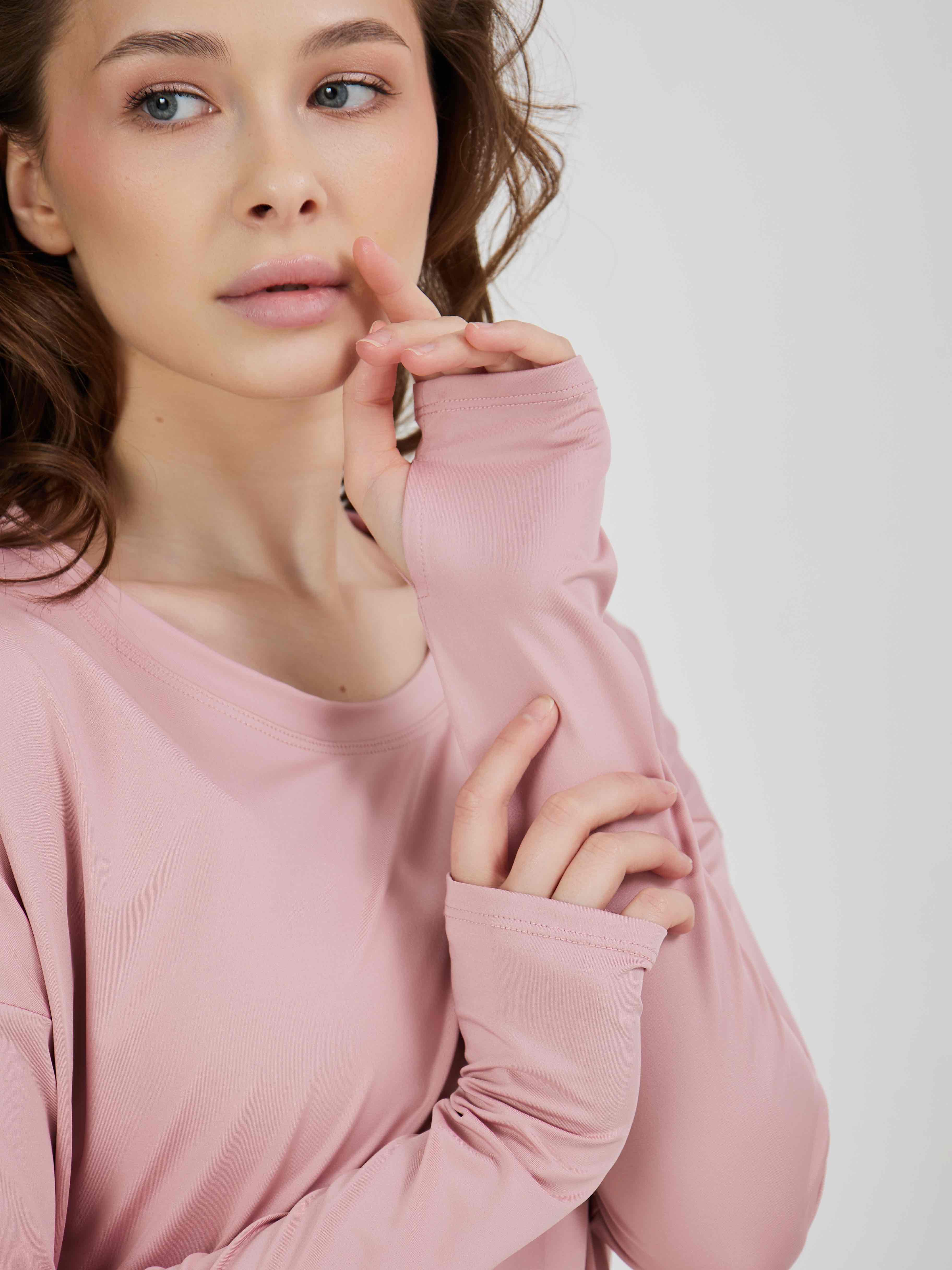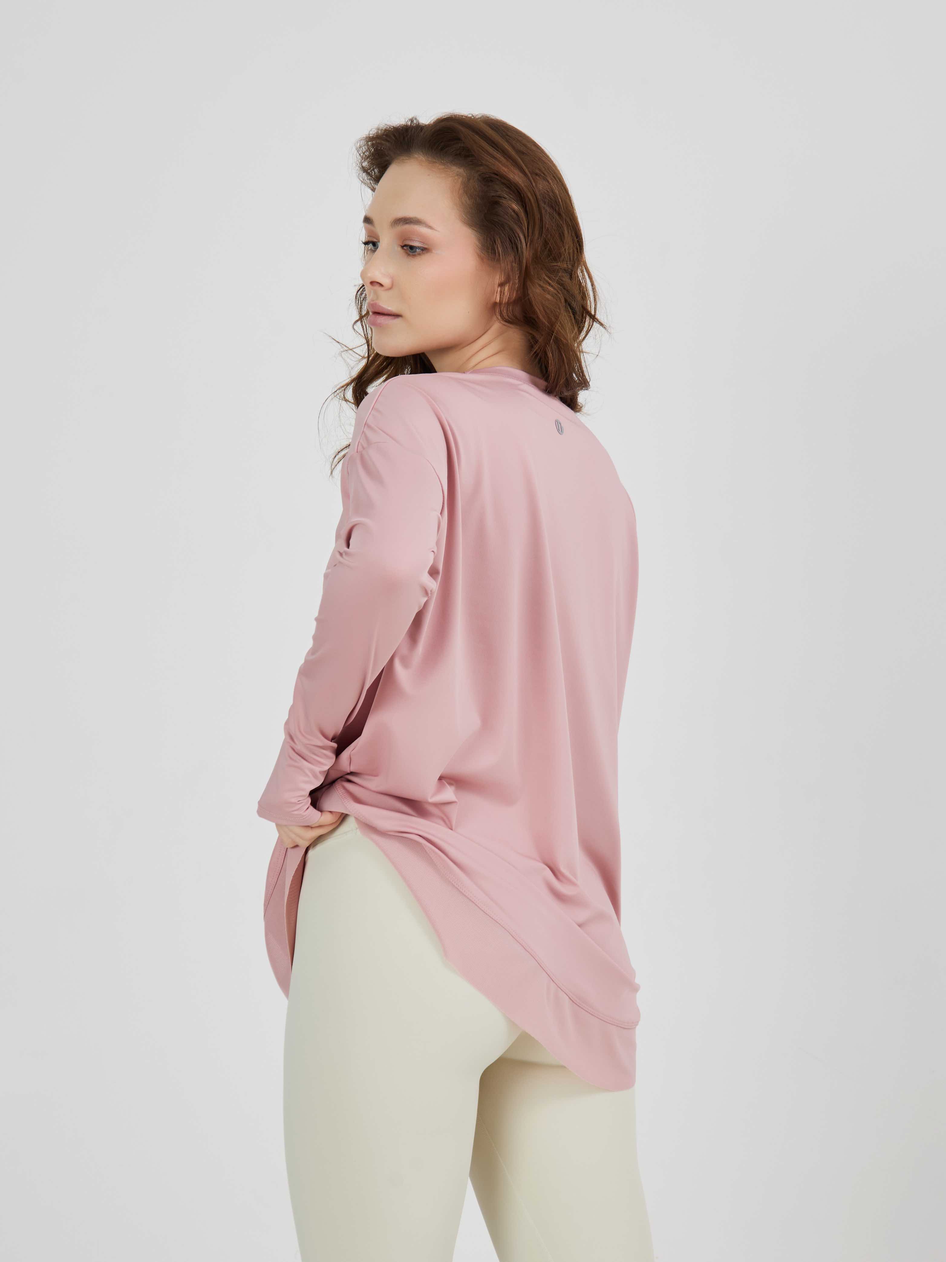 Лонгслив свободный с полукруглым низом с сеткой по цене 3 290 ₽, цвет Розовый | SURE