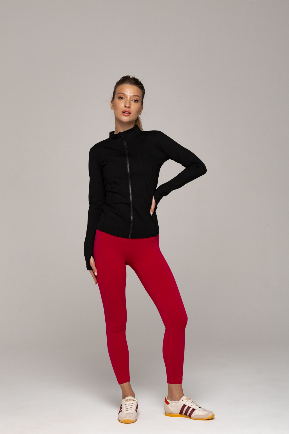 - Регулируемый и эргономичный крой: Тонкий и облегающий силуэт обеспечивает свободу движения, а плоские швы исключают трение и натирание, что особенно важно при длительных активностях.