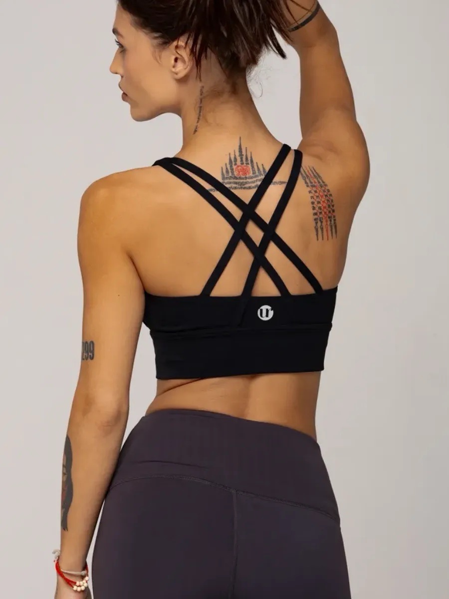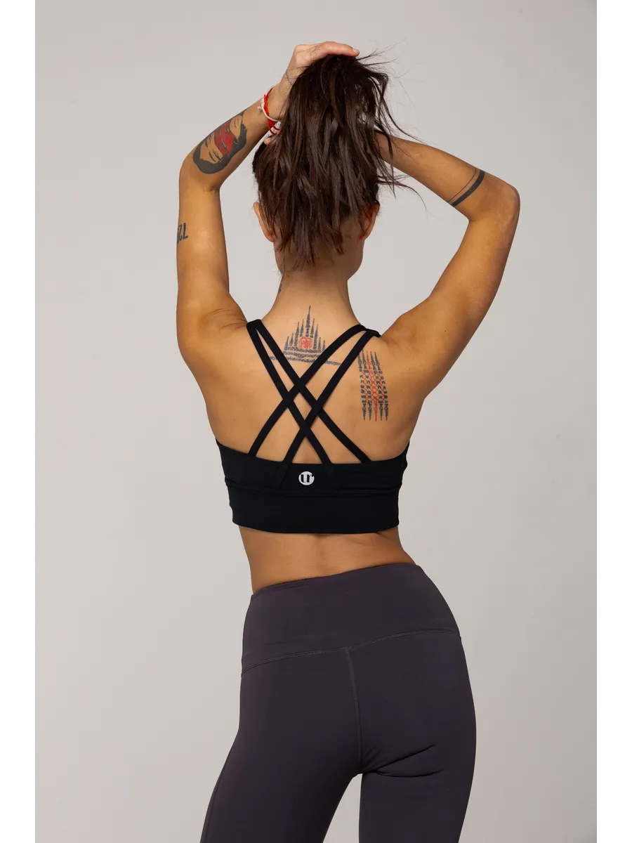 Спортивный топ бра с перекрестными бретелями на спине