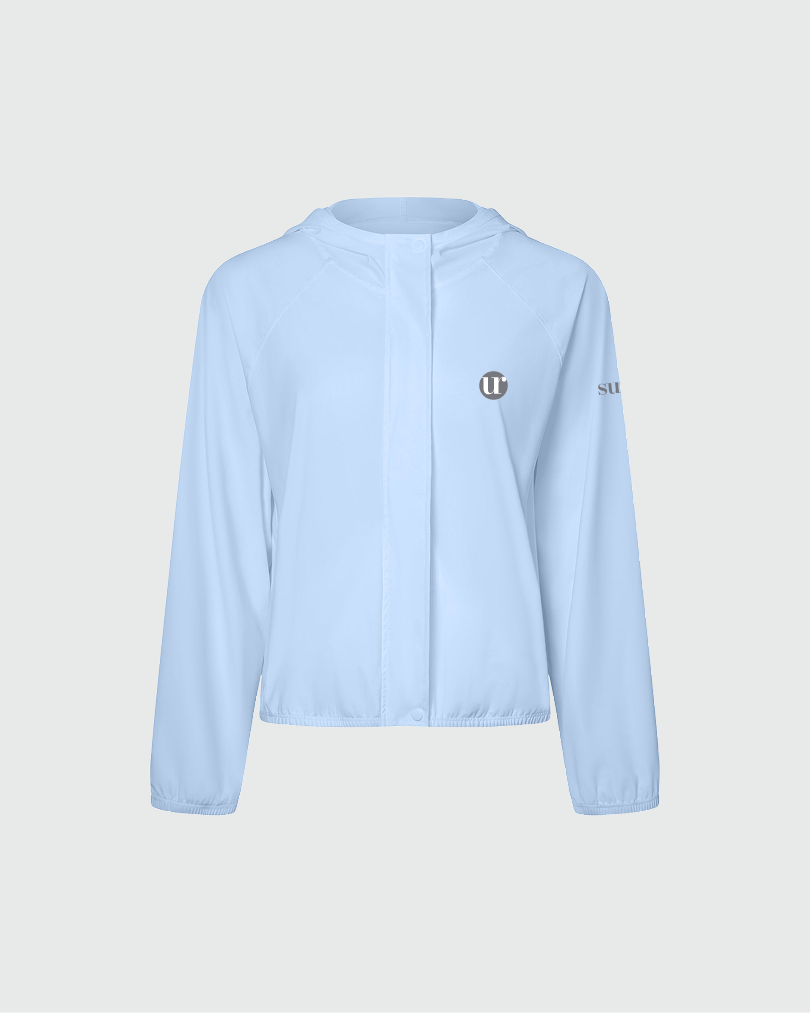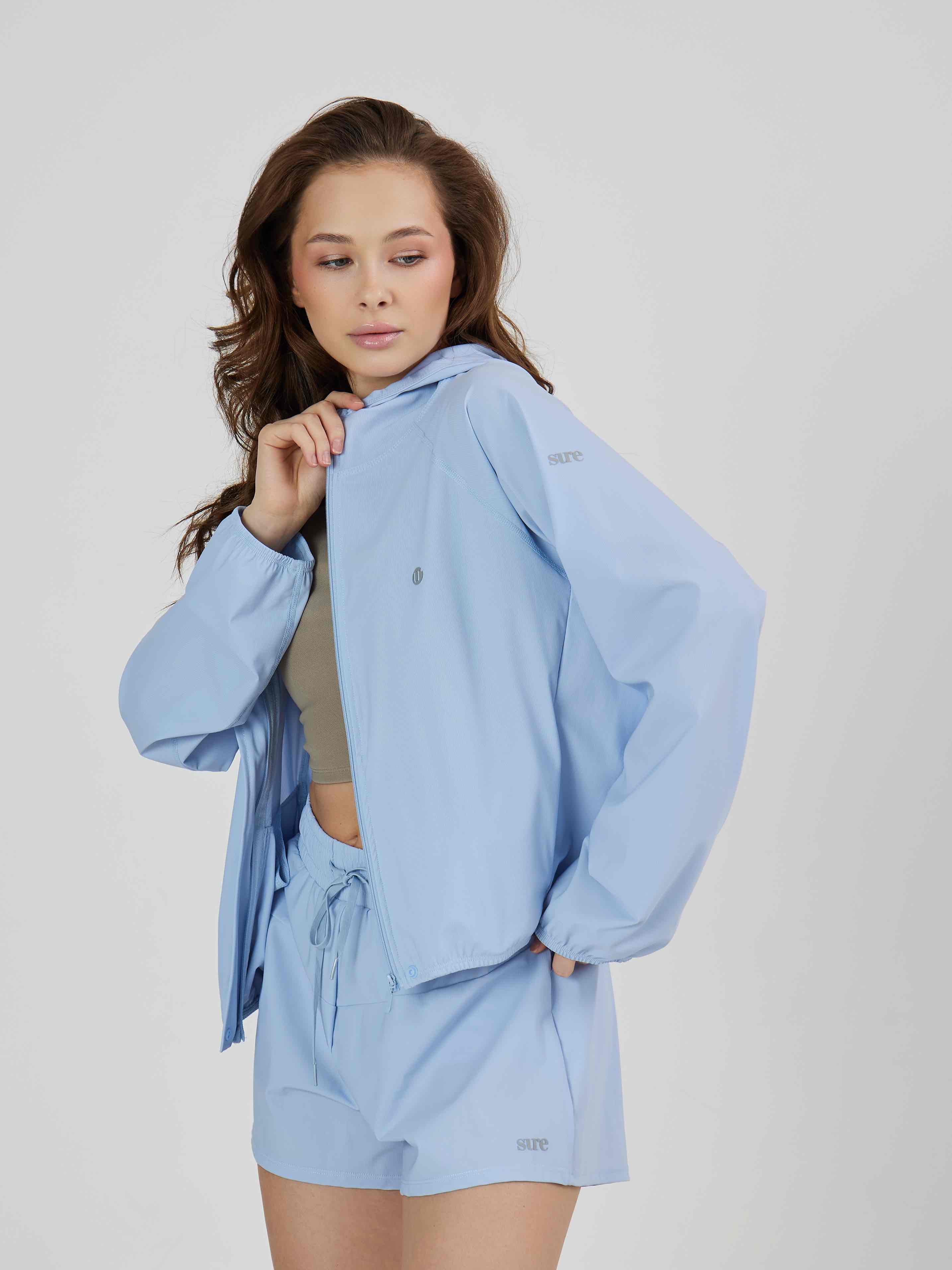 Ветровка с капюшоном из эластичной ткани SPF50 по цене 5 490 ₽, цвет Голубой | SURE