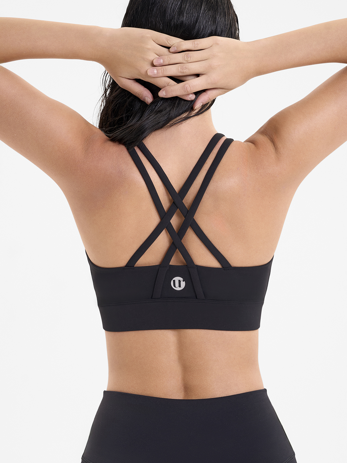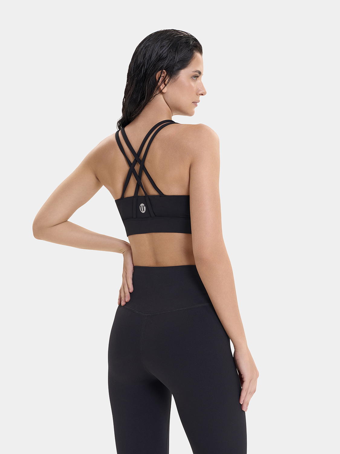 • Двойной крестообразный геометрический вырез на спине — надёжная поддержка и стиль